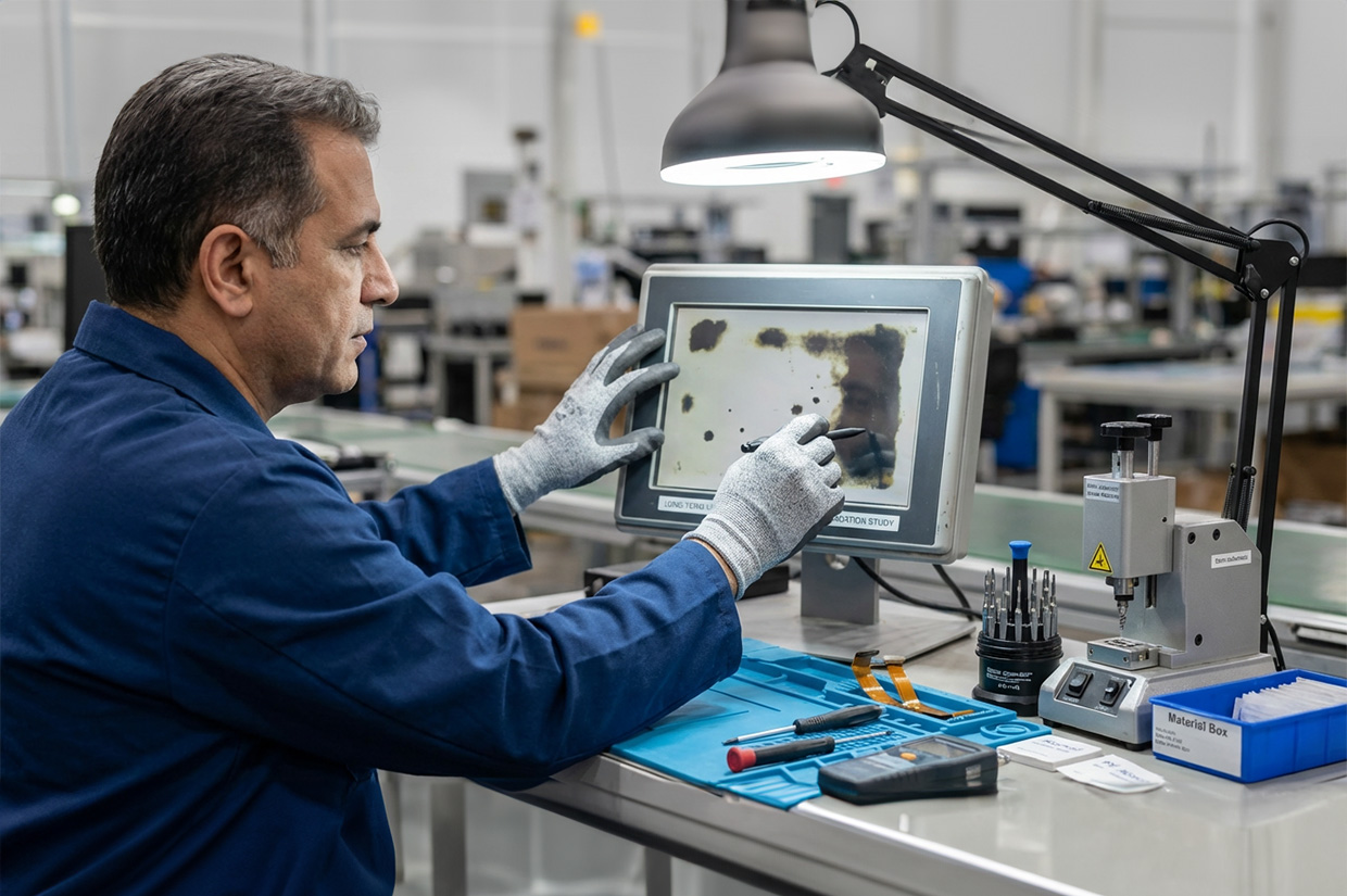 Beyond readability, black spots can impair precise touch operations in HMIs, leading to mis‑touches and downtime. If defects spread, repair and replacement costs can rise significantly.
